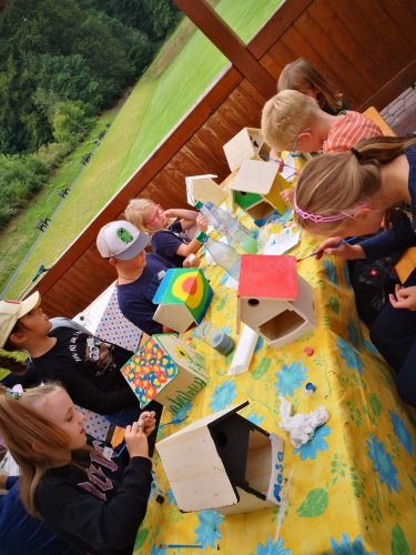 Mit viel Eifer wurde gehämmert, gepinselt und gestaltet. So entstanden kleine Kunstwerke, die nicht nur schön aussehen, sondern auch der Natur etwas zurückgeben. Und natürlich durfte der Spaß nicht zu kurz kommen: Bewegungsspiele, Picknick und das große Schwungtuch sorgten für viele fröhliche Gesichter!